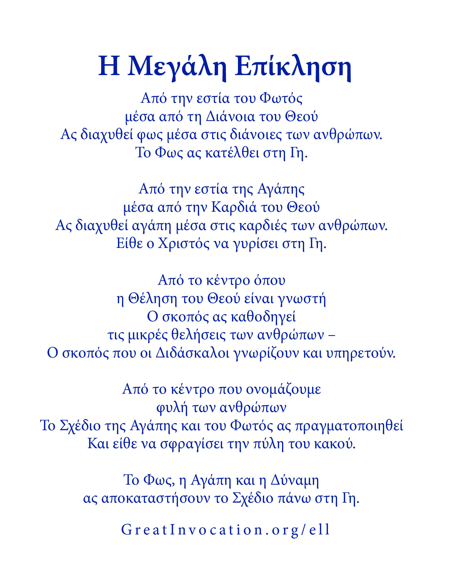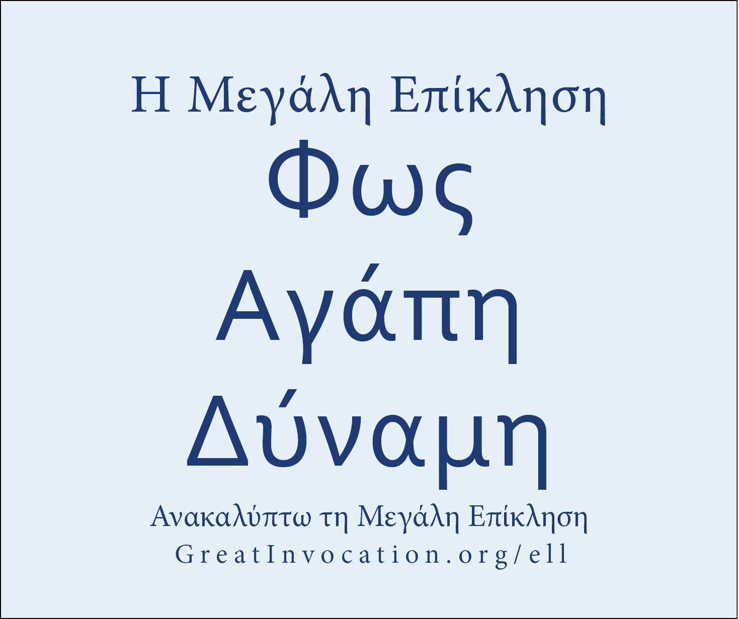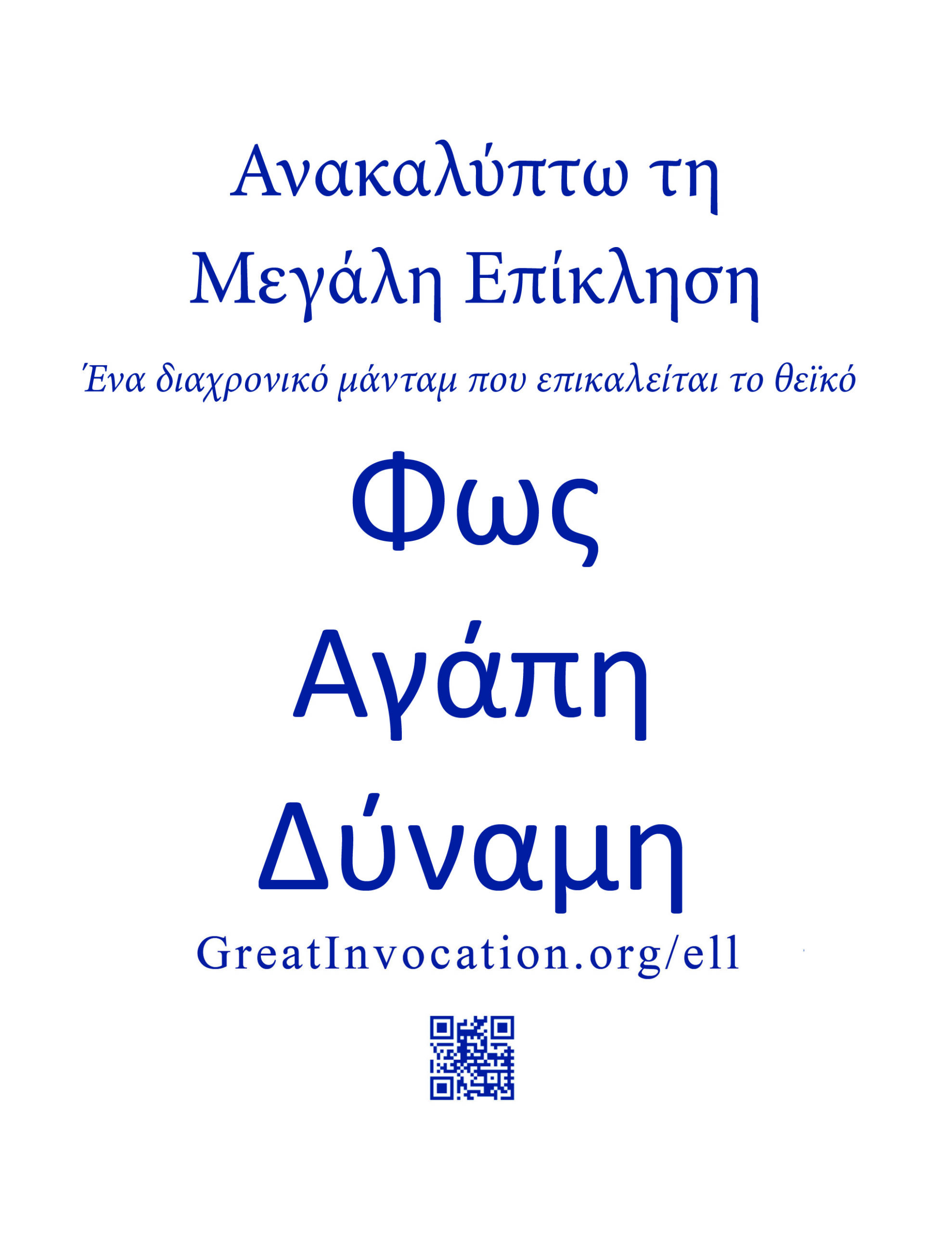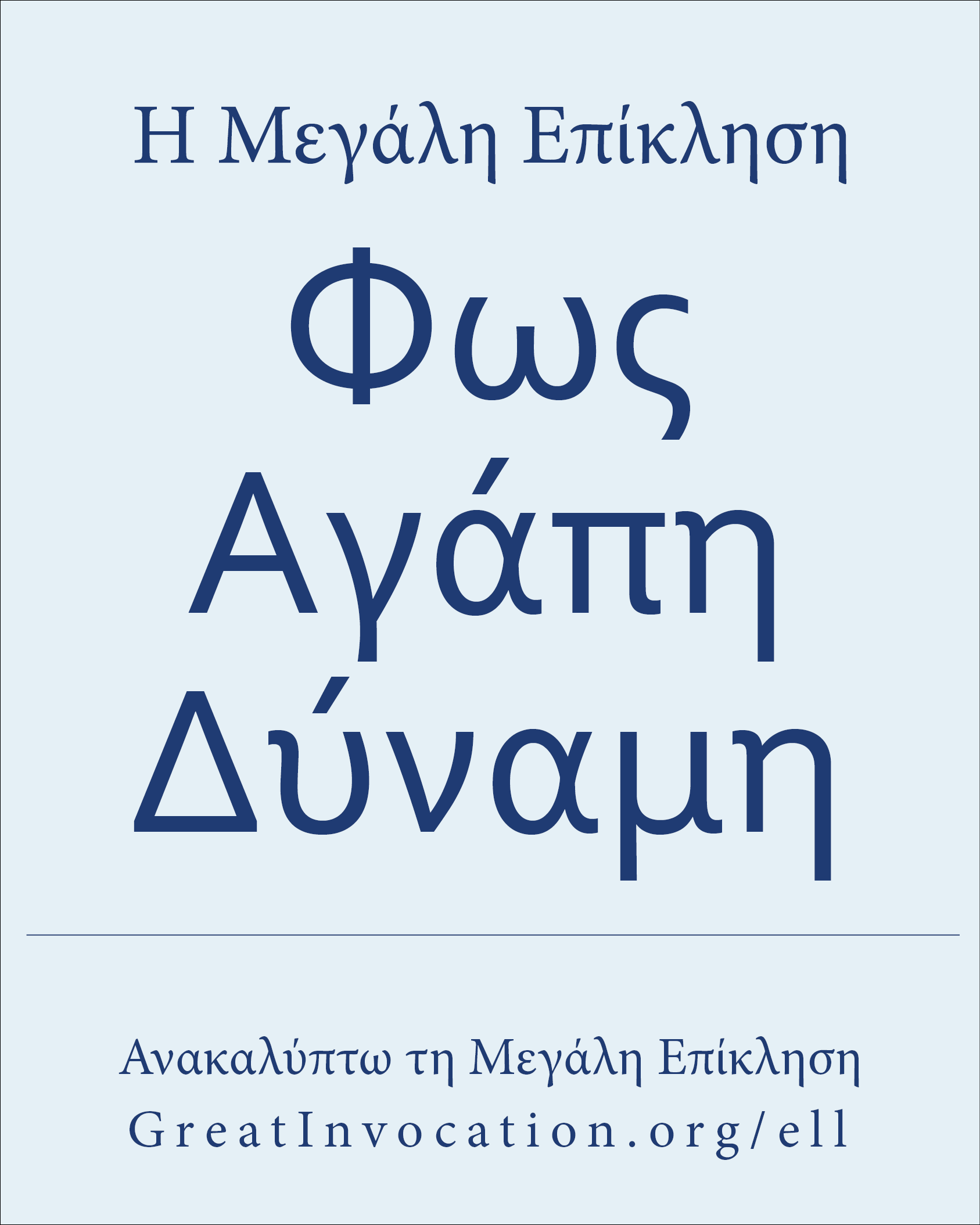 Παρέχουμε ποικίλες πηγές προκειμένου να σας βοηθήσουμε στη διάδοση της Μεγάλης Επίκλησης. Ορισμένες από αυτές μπορούν να μεταφορτωθούν μέσω των παρακάτω συνδέσμων και να μοιραστούν ηλεκτρονικά ή να εκτυπωθούν και να διανεμηθούν στην κοινότητά σας. Η Παγκόσμια Καλή Θέληση αποστέλλει πολλά από αυτά τα υλικά δωρεάν μέσω ταχυδρομείου (σε επιλεγμένες τοποθεσίες). Για να ζητήσετε να σας αποσταλούν αυτά τα υλικά μέσω ταχυδρομείου, μπορείτε να χρησιμοποιήσετε τον παρακάτω σύνδεσμο.
