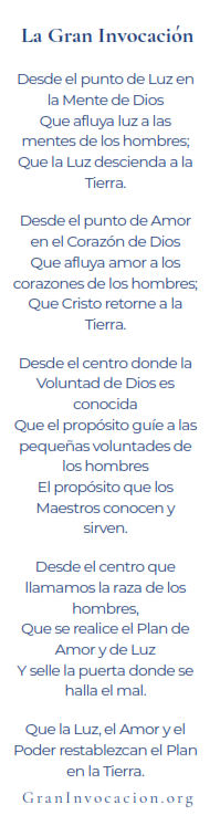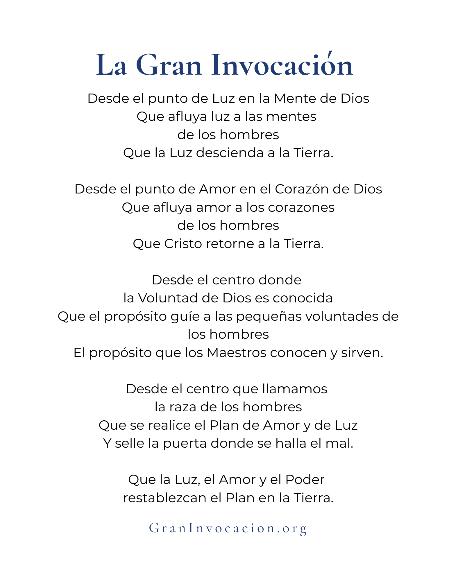 Puntos de libro imprimibles con el texto completo de la Gran Invocación para uso personal o para compartir.